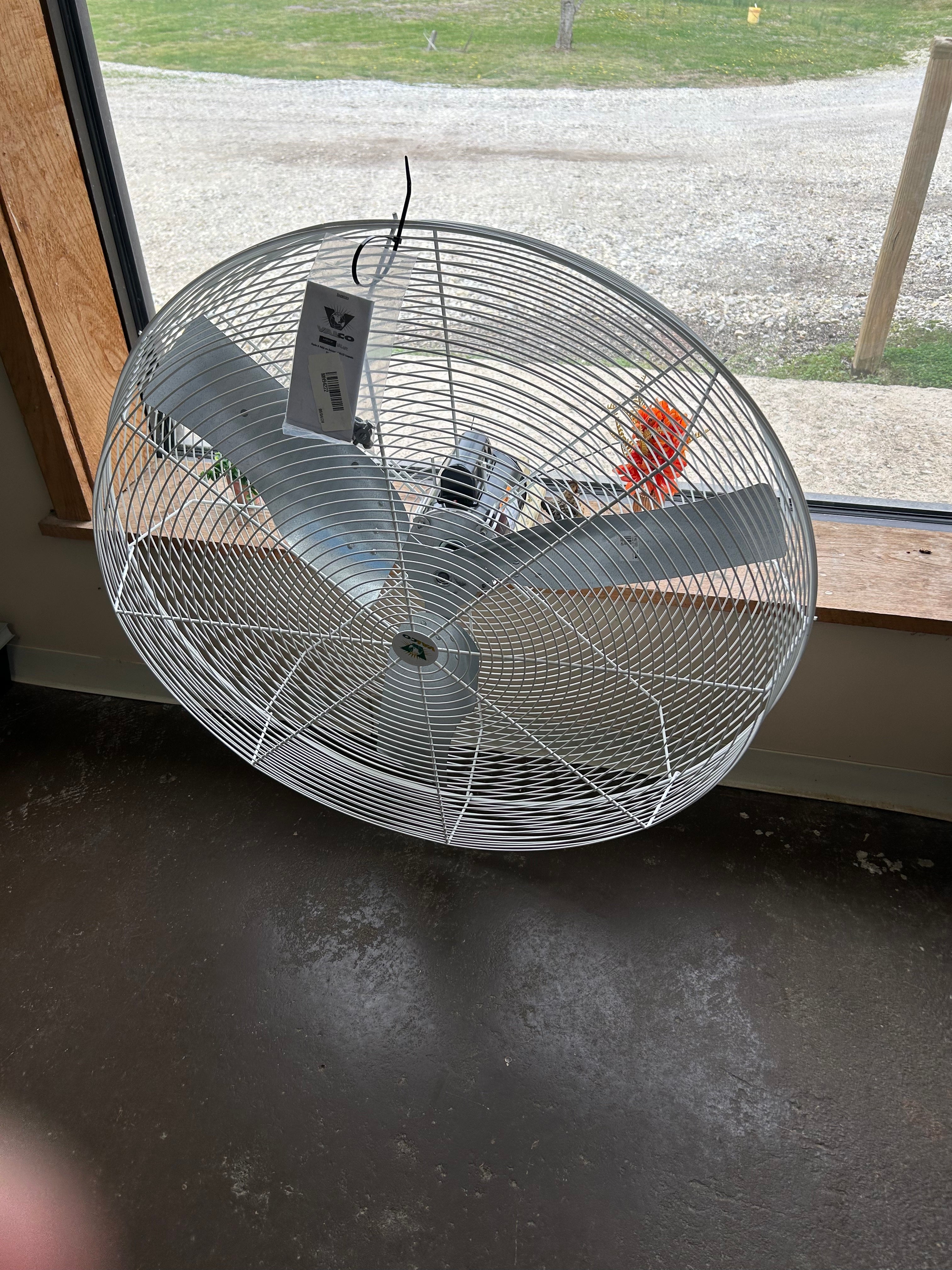 Stir fans help to stabilize air temperatures and improve heating efficiency in cooler weather. Likewise, they work to increase air speed and promote bird cooling in warmer weather. The PVC-coated wire screen prevents rust to extend the life of the fan. Can be mounted to ceilings, walls, and trusses.